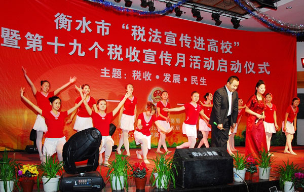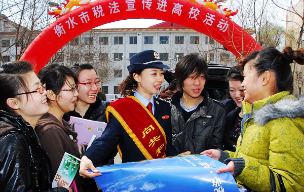 2010年4月1日上午,全國第19個稅收宣傳月到來之際,衡水市國、地稅局聯(lián)合來到衡水學院,拉開了稅收宣傳月暨稅收宣傳走進高;顒拥男蚰。