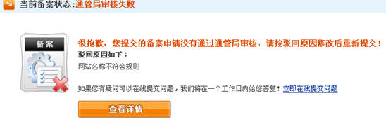 7、萬(wàn)網(wǎng)審核失敗